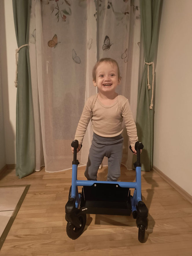 Zuhause angekommen begannen die nächsten Herausforderungen. Seit meiner Geburt musste ich bereits mehrere Operationen durchstehen: Ich kann meine Zehen nicht bewegen, da meine Füße ab dem Knöchel taub sind. Ich benötige spezielle Hilfsmittel wie Orthesen, Rollator und einen Rollstuhl. Kurze Strecken schaffe ich tapfer mit meinem Rollator.