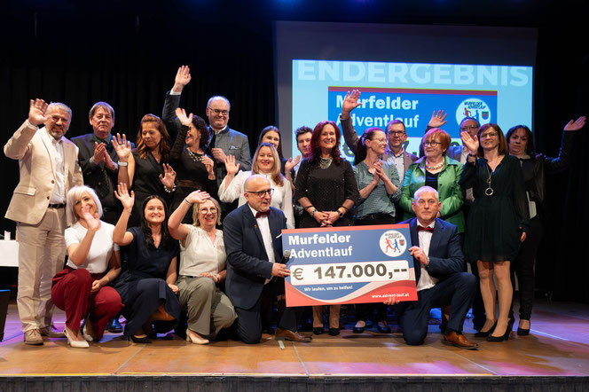 Im zweiten Teil wurde eine Rückschau auf den 20. Adventlauf gehalten. Einige Spenden wurden auf der Bühne überreicht. Den Höhepunkt des Abends bildete die Präsentation des Spendenergebnisses.